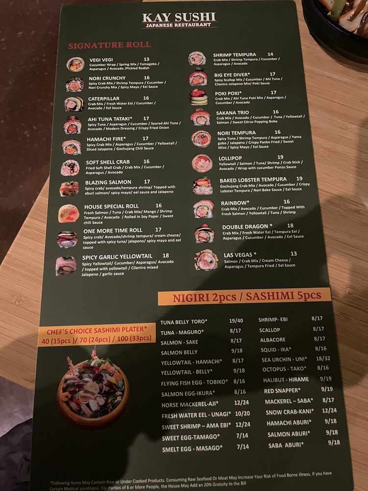 Nestled in Scottsdale, AZ, Kay Sushi is a delightful cocktail bar that invites you to savor an exquisite blend of Japanese cuisine. Known for its extensive menu, Kay Sushi boasts a variety of options, from fresh sashimi and inventive poki bowls to delicious hot dishes like Pork Katsu and Butter Corn Salmon. The restaurant's commitment to quality is evident through their use of fresh ingredients and creative flavor profiles that pay homage to both tradition and innovation.